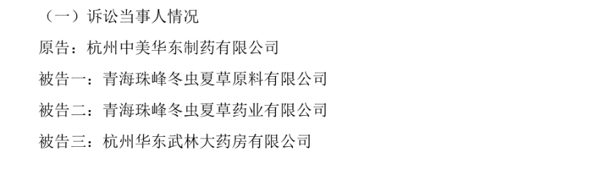 12月12日及14日,两家公司前后发布诉讼进展公告。该案中,华东医药全资子公司中美华东为原告,被告包括原料药、制剂、销售三方,即珠峰原料、珠峰药业、华东武林大药房三家公司。