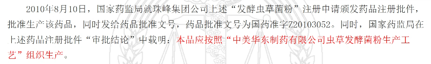 这期间,华东医药在一份2015年的公开判决书中发现,珠峰原料此前取得“发酵虫草菌粉”药品注册批件、合法合规生产发酵虫草菌粉的前提条件是,其生产工艺必须与中美华东保持一致。
